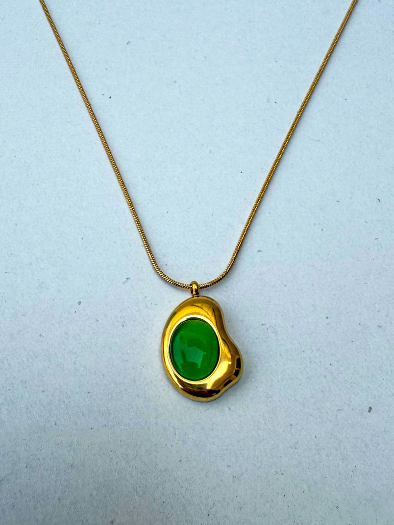A locket centered with a serene green cabochon, it’s understated, fluid, and endlessly wearable.
